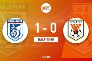 上半场比赛结束,大连英博1-0山东泰山。