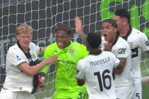 本场比赛帕尔马第42分钟便少打一人,下半场补时第7分钟,热那亚压哨获得点球,铃木彩艳神勇扑点,最终帮助球队拿下1分。